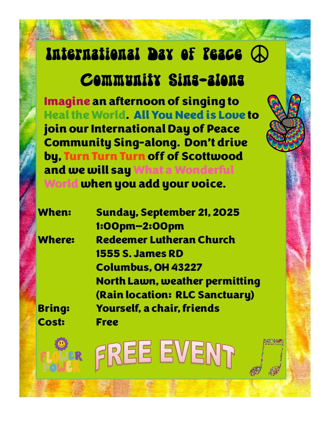 Links International Day of Peace Community Sing-Along Click HERE for more information Help for Ukraine Click HERE for more information